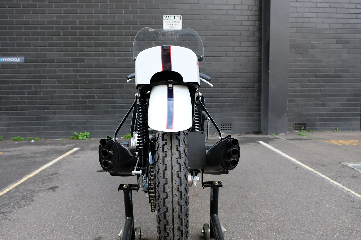 Slippery Sam is the most well-remembered of these Tridents that were raced. This reproduction is 1 of 3 exact replicas which made headlines for a legendary racing incident in 1970 at the prestigious Bol d’Or in France. The team mistakenly mixed Duckhams mineral oil with Castor Racing oil which is not compatible. Throughout the race, this caused a major blockage, spraying oil through the engine breather and covering the rider… Amazingly, the bike finished the race, in 5th, and became known as Slippery Sam.