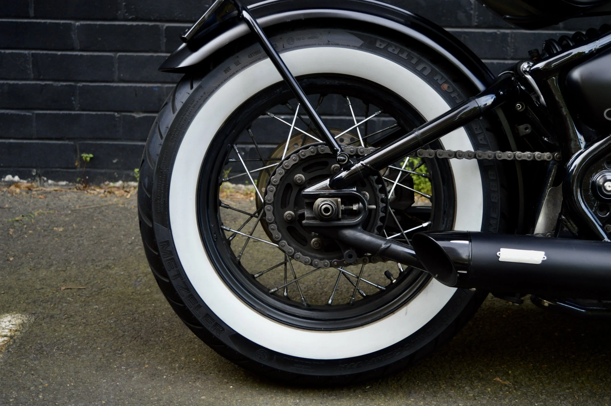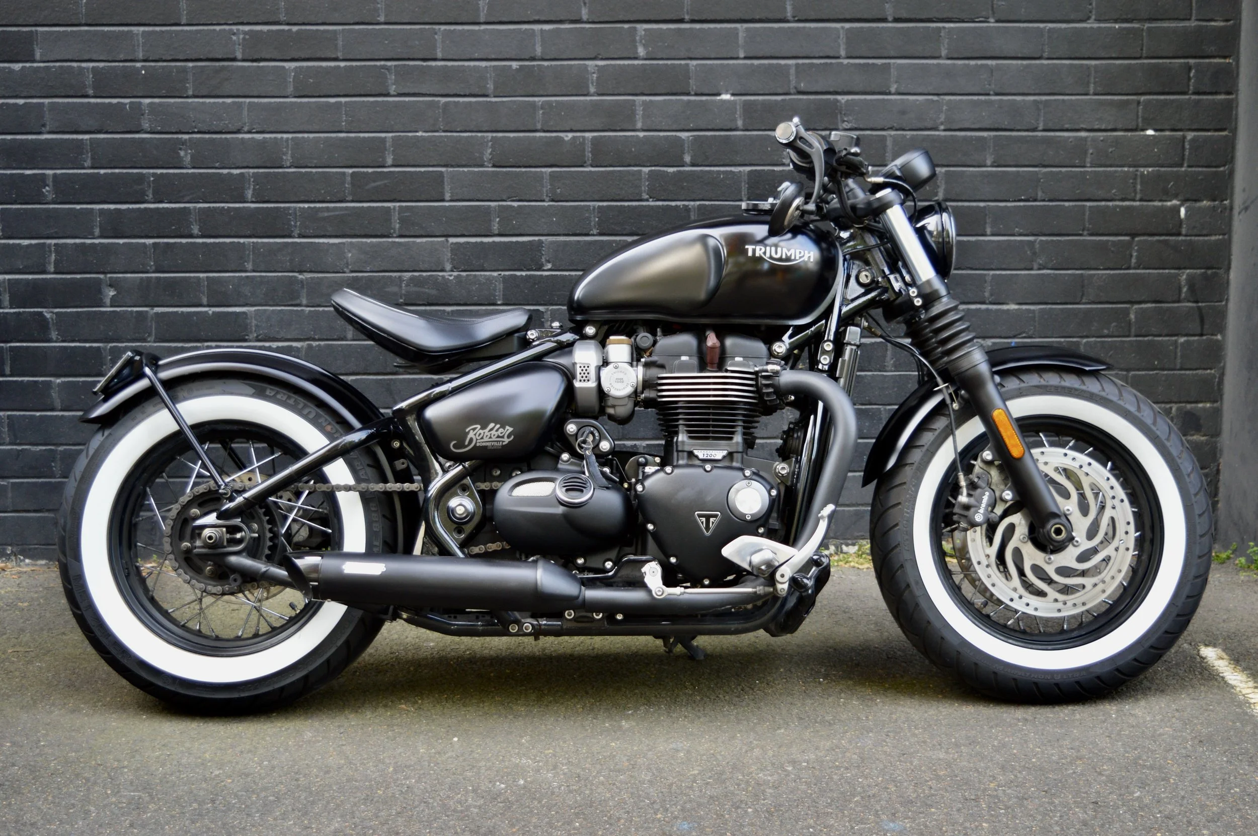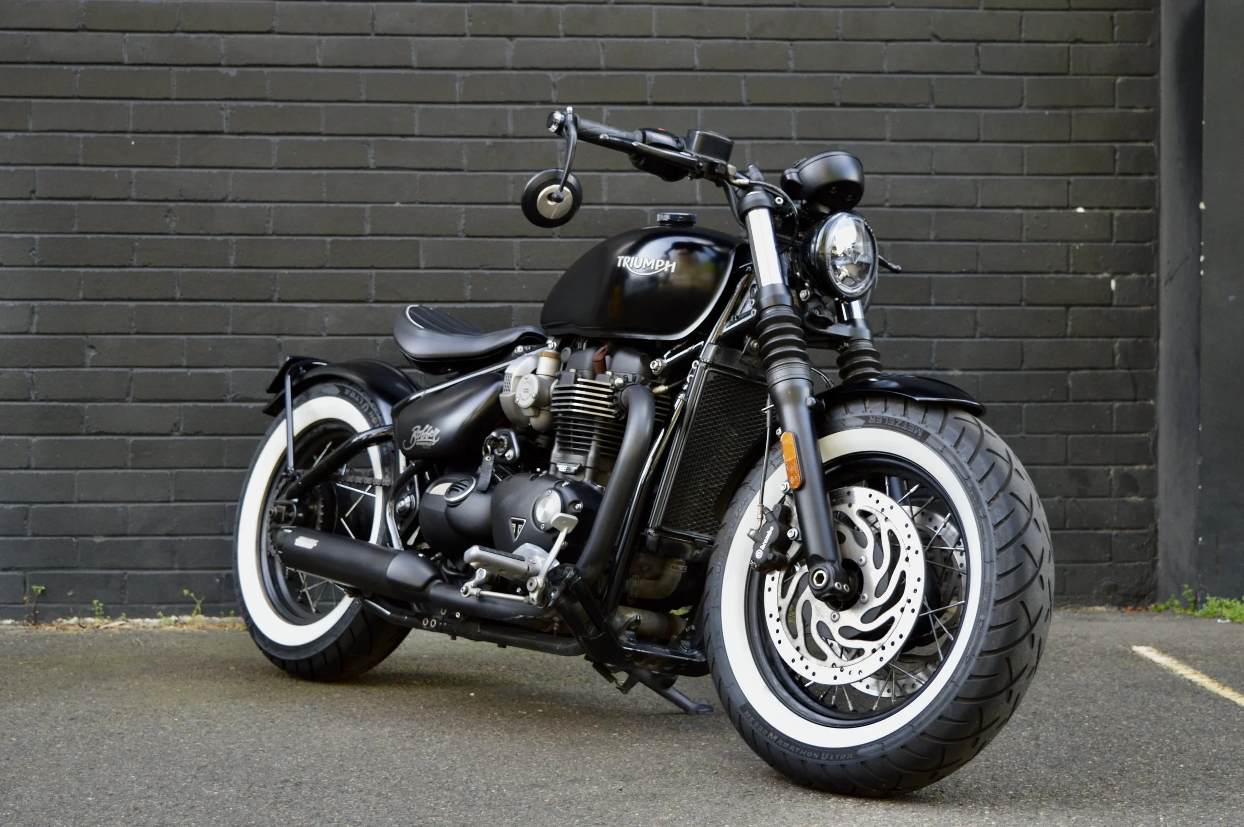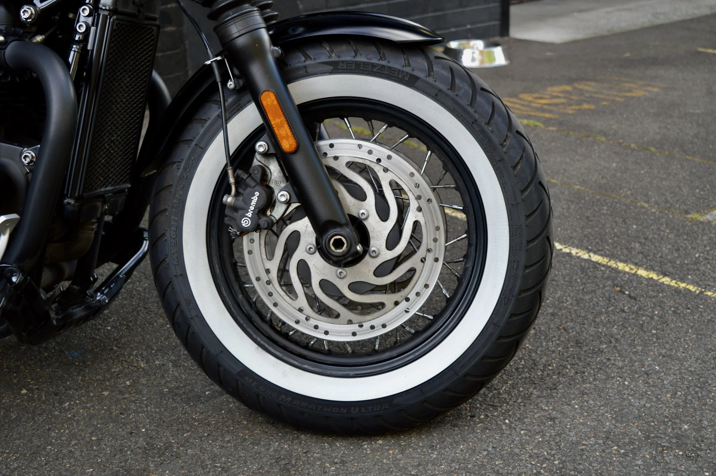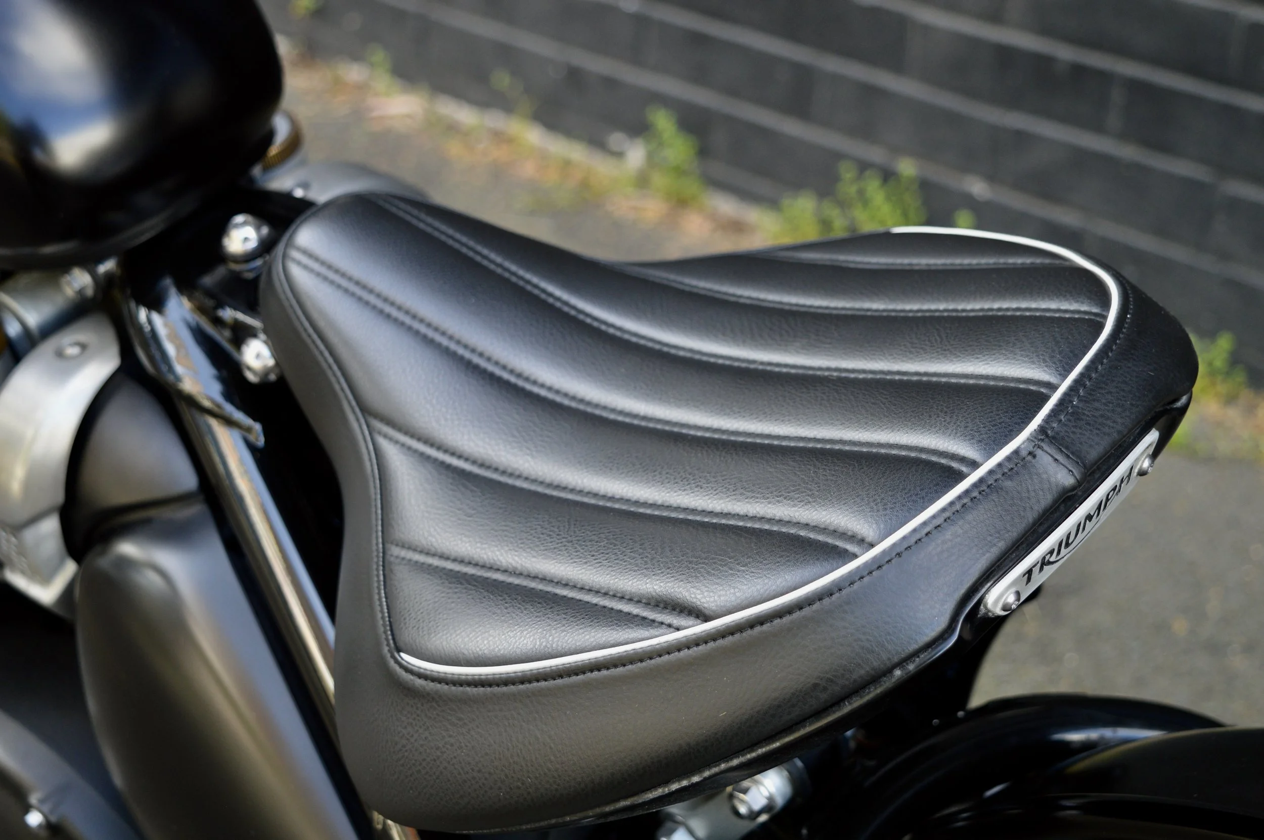 Finished in deep black with whitewall tyres, this Bobber has real presence. The stance is low, aggressive, and classic — equal parts vintage hot rod and modern street cruiser. The Vance & Hines exhaust transforms the sound into a deep, throaty rumble that perfectly suits the 1200cc High Torque parallel twin. Every twist of the throttle delivers that unmistakable British twin character — responsive, raw, and full of soul.
