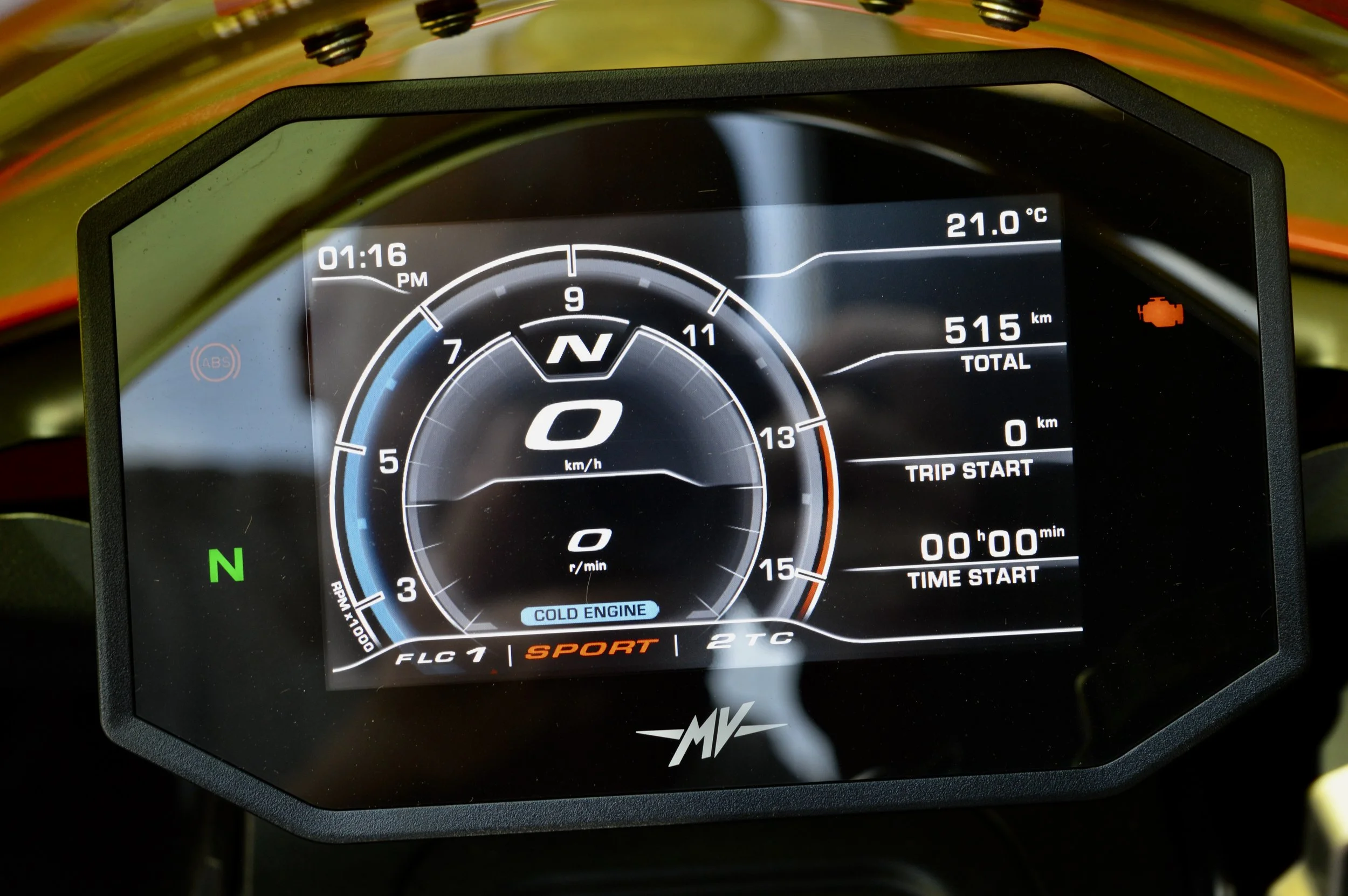 Suspension is handled by fully adjustable Marzocchi forks and a Sachs rear shock, with Brembo monobloc brakes ensuring razor-sharp stopping power. The chassis balance and ride quality are pure MV Agusta — sharp, responsive, and deeply rewarding for those who appreciate fine mechanical artistry.