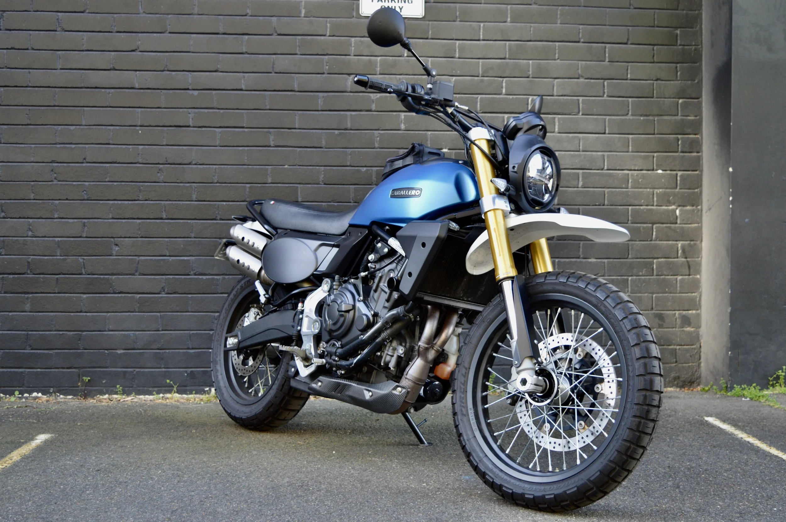 Beneath the retro styling sits a serious chassis setup: Marzocchi 45mm adjustable forks, a Kayaba rear shock, and Brembo brakes with cornering ABS. The Caballero 700 is as competent as it is stylish, with its flat-track stance and scrambler geometry giving it a confident and playful character.