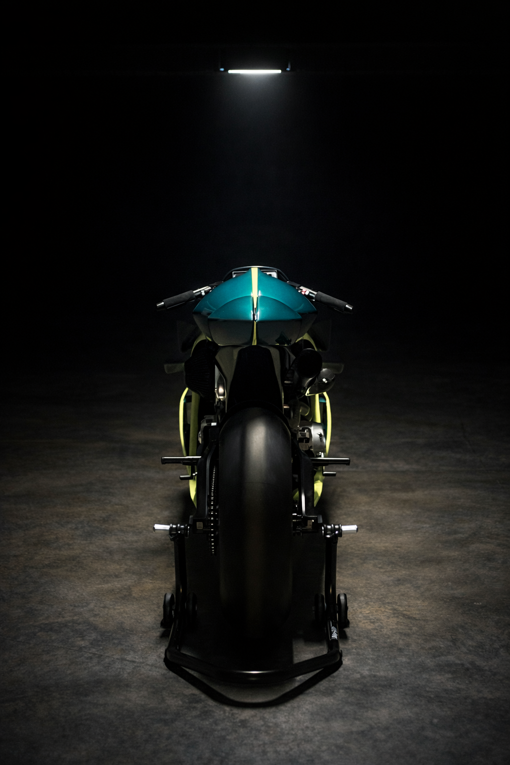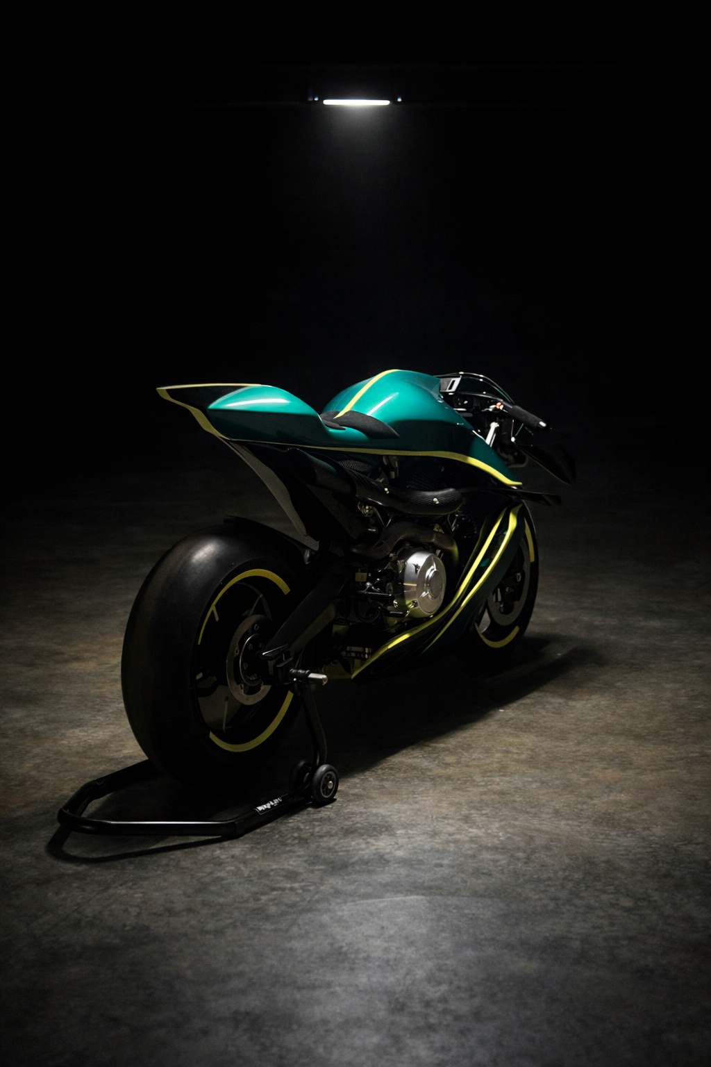 The innovative chassis aggregates the best techniques such as a CNC machined from solid backbone bolted on the V-twin engine which is a fully load-bearing chassis component, combining stiffness with lightness. Then structural carbon fiber rear sub frame and Titanium interfaces are completing this high-tech chassis.