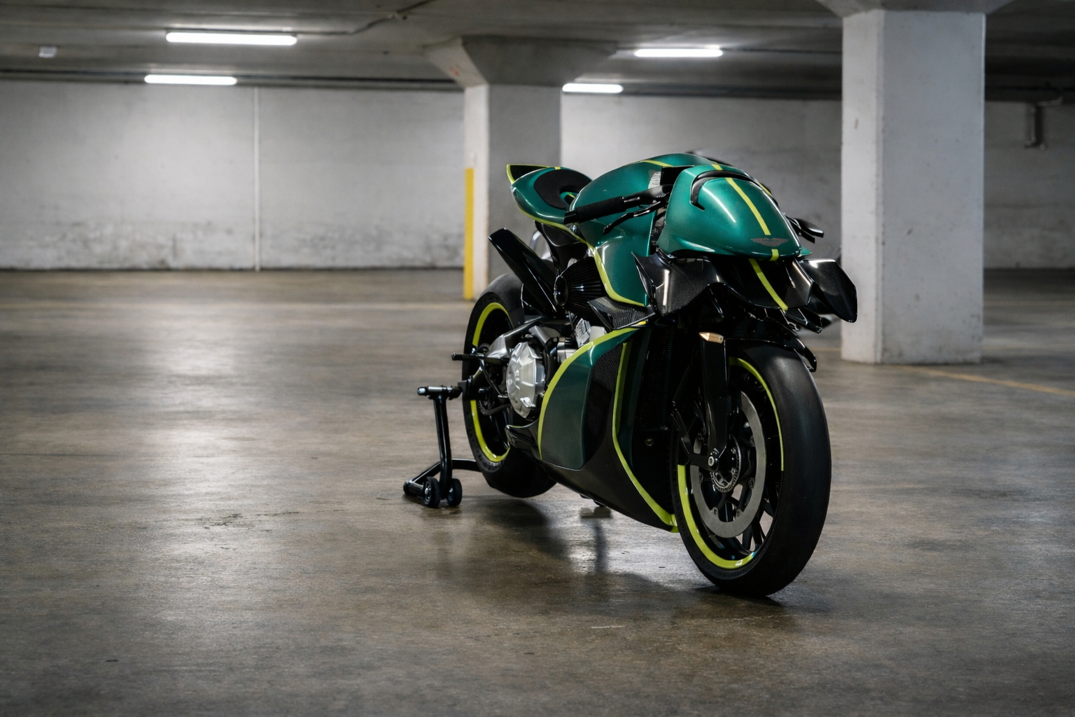 A DOHC 997cc 8-Valve 88-degree V-twin, water and oil cooled, short stroke measuring 94mm x 71.8mm, kicks out a turbo-charged 134 kW (180 hp) at just 180 kilos dry weight.